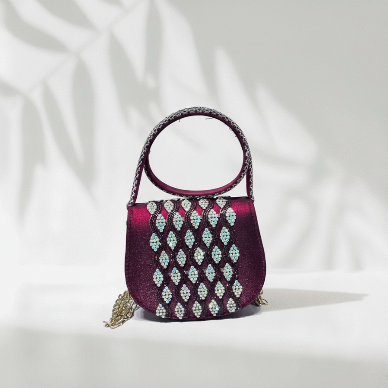 Designed for women who adore refined style, this clutch features a deep maroon velvet body enhanced with hand-set crystal embellishments that add a dazzling touch to any outfit.