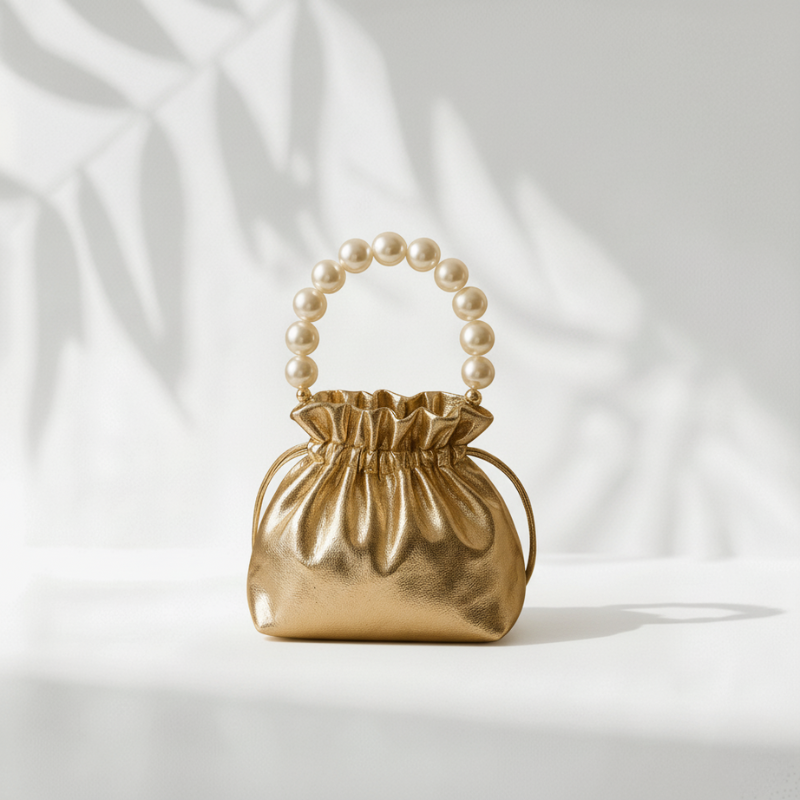 Perfect for evening events, weddings, or festive occasions, the Golden Aura Clutch adds a touch of charm and class to every outfit. Its sleek structure, smooth drawstring closure, and detailed craftsmanship make it both beautiful and practical.