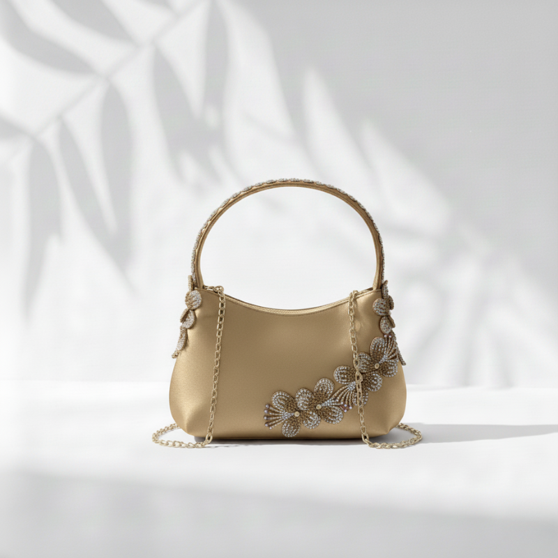 Experience effortless luxury with the Flora Luxe – Champagne Glow, a handbag that defines subtle sophistication.
