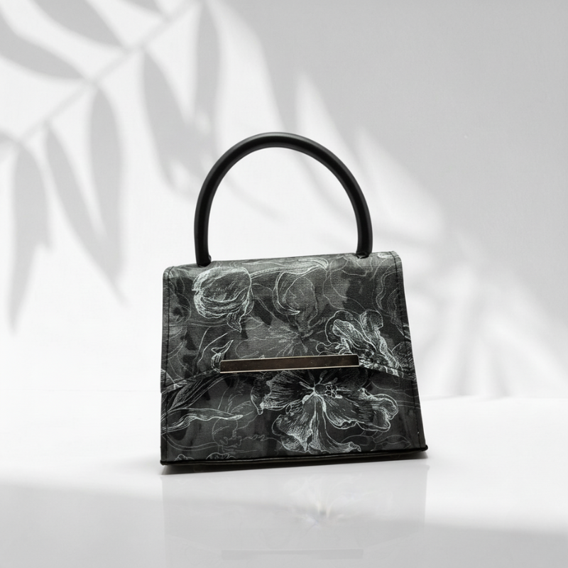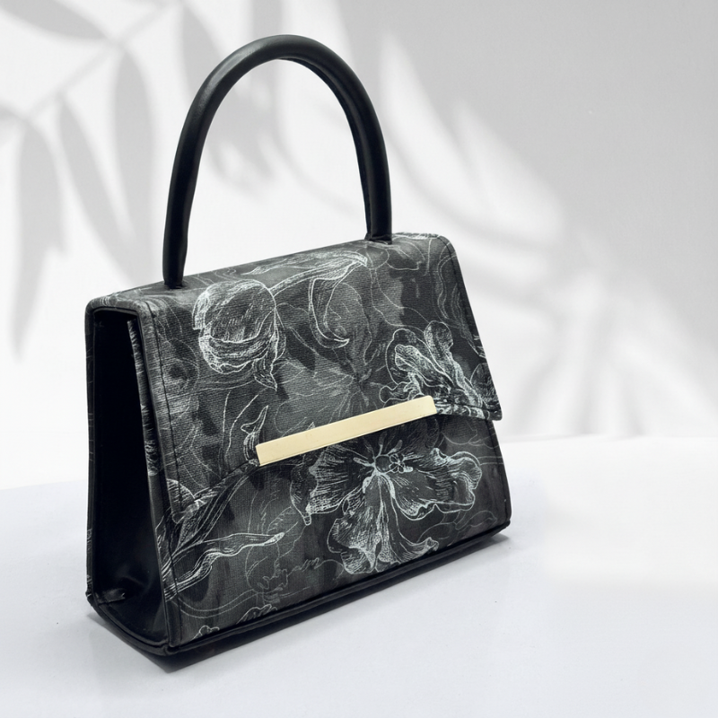 Designed with a graceful floral pattern on a rich charcoal gray base, this handbag defines modern elegance. The structured silhouette, premium material, and comfortable top handle make it ideal for both casual outings and special occasions.