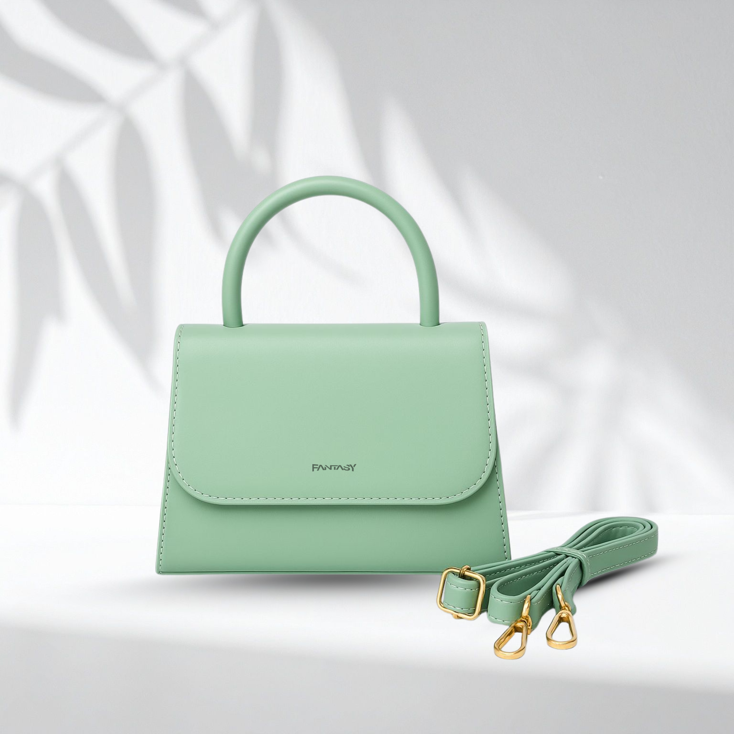 Refresh your collection with this mint green top-handle handbag, designed for women who appreciate both fashion and practicality. Crafted from high-quality vegan leather, it features a structured shape, durable top handle, and a removable strap for multiple styling options – hand carry or crossbody. With its elegant design and fine detailing, this handbag is suitable for work, outings, and special occasions. A modern accessory that adds effortless sophistication to your look.