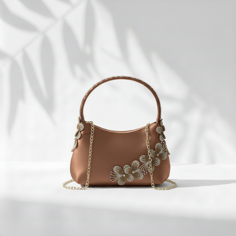 Elevate your look with the Flora Luxe – Mocha Bronze handbag. Its deep bronze shade and elegant texture bring warmth and class to every outfit.