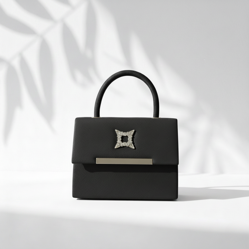 The Noir Charm Handbag embodies timeless elegance with its sleek black finish and refined detailing. A statement of sophistication, designed to elevate every look — from day to night.