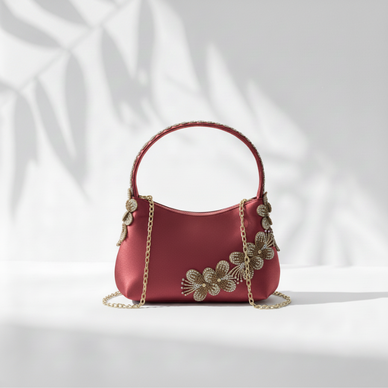 Turn heads with the Flora Luxe – Ruby Maroon handbag. Its rich color and refined design make it the perfect accessory for bold, confident women.