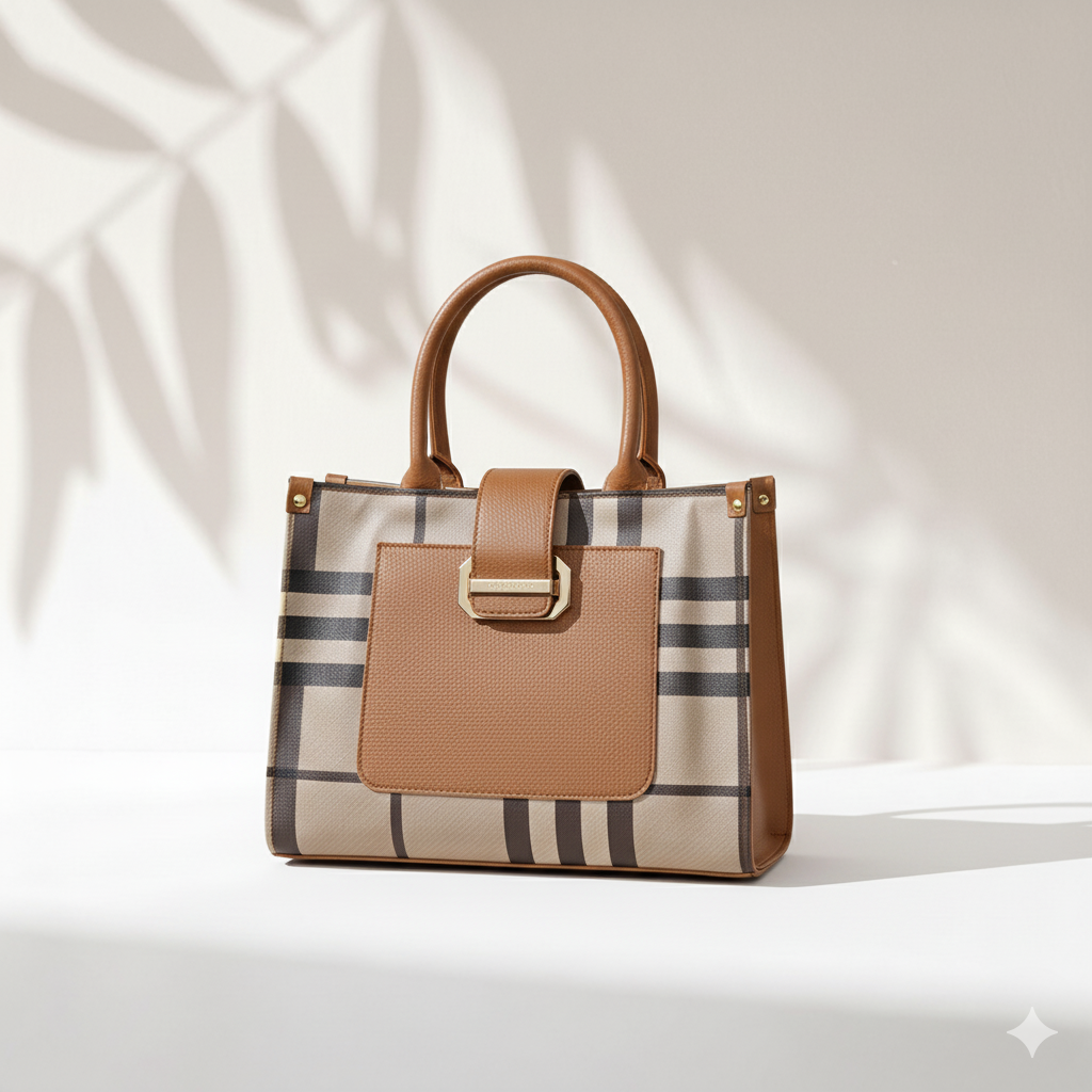 Designed for the modern woman who values both style and practicality, this structured handbag features a luxurious check pattern with a smooth leather flap finish. Its spacious interior ensures ample room for essentials, while the sturdy handles offer comfort and class in every carry.